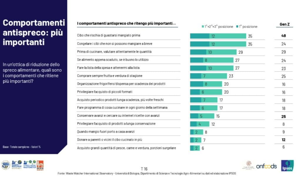 Per gli italiani, le strategie più efficaci contro lo spreco sono gesti semplici: consumare prima ciò che rischia di deteriorarsi, congelare, cucinare porzioni adeguate. Sono pratiche già radicate e percepite come realistiche anche per il futuro. È un segnale importante: la prevenzione non si gioca sulle innovazioni lontane, ma sulla capacità di dare valore a ciò che si ha in casa.