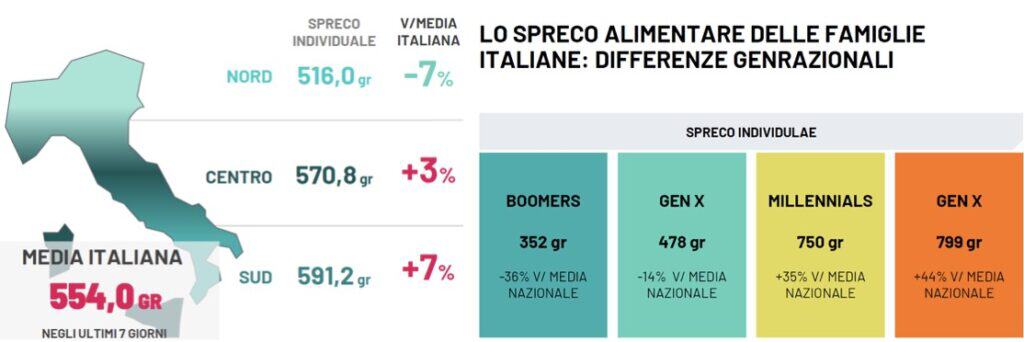 I dati sono stati analizzati anche sulla base del Cross Generation Food Waste Report, per capire esattamente come l’età, l’esperienza e le differenze generazionali influiscono sulla predisposizione alla acquisizione, fruizione e gestione del cibo, in chiave di prevenezione e riduzione dello spreco alimentare.